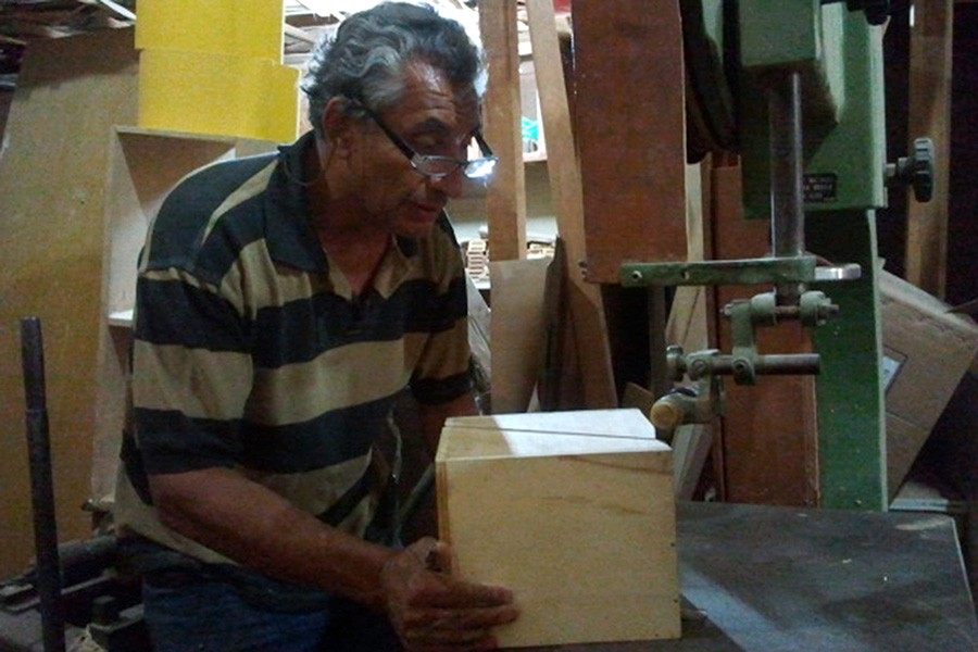 cortado na diagonal com serra de fita