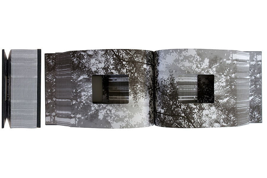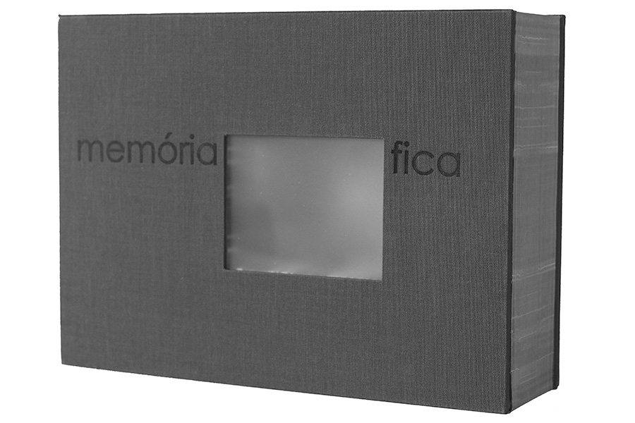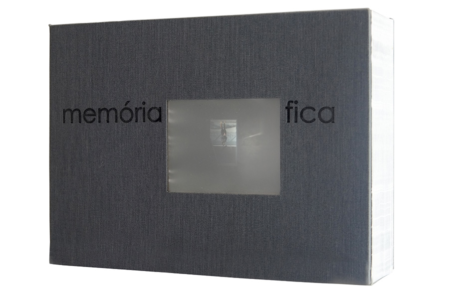 O livro Memória Fotográfica é uma câmera escura. Em uma das capas há um furo com uma lente, na outra, uma janela com um vidro despolido. Atravessando todas as páginas há um recorte retangular, sempre no mesmo lugar, para que a luz passe formando uma imagem no vidro. Impressa nas páginas há uma outra imagem: de raios de sol projetados em uma parede ao passarem pela copa de uma árvore, reproduzindo o fenômeno ótico que possibilita a fotografia. E reproduzindo o próprio livro a qual pertence.