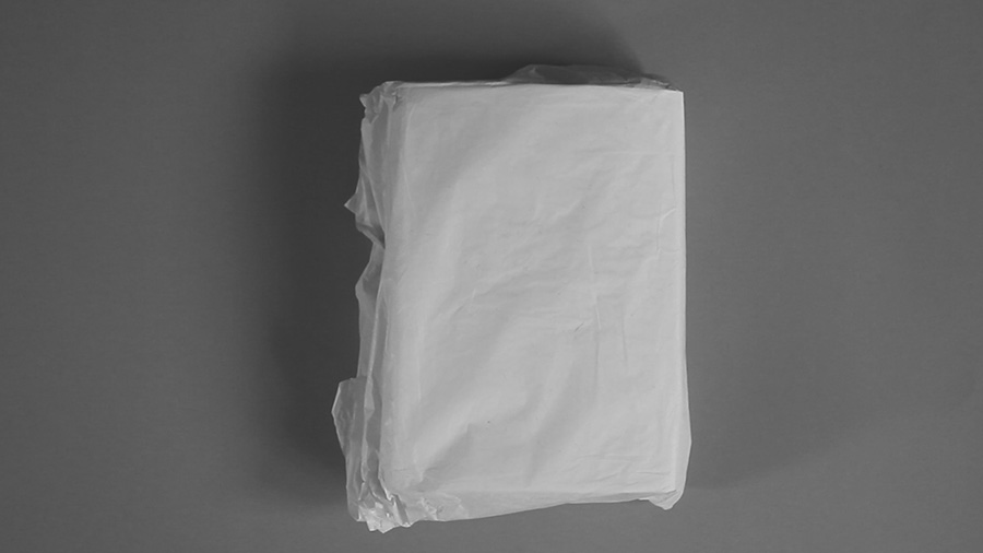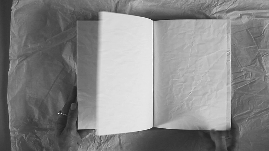 papel sulfite A4 branco amassado e depois desamassado costura manual embrulhado em papel de seda branco amassado fechado 15 x 21 x 3 cm aberto 25,8 x 21 cm 2017