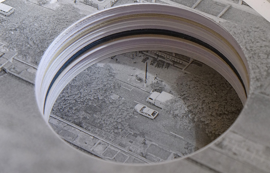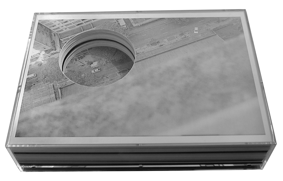 impressão pb digital em sulfite A4 vários tipos e cores de papel A4 furos com faca gráficacaixa de acrílico30 x 22 x 7 cm PA +2017 (foto de 1992)