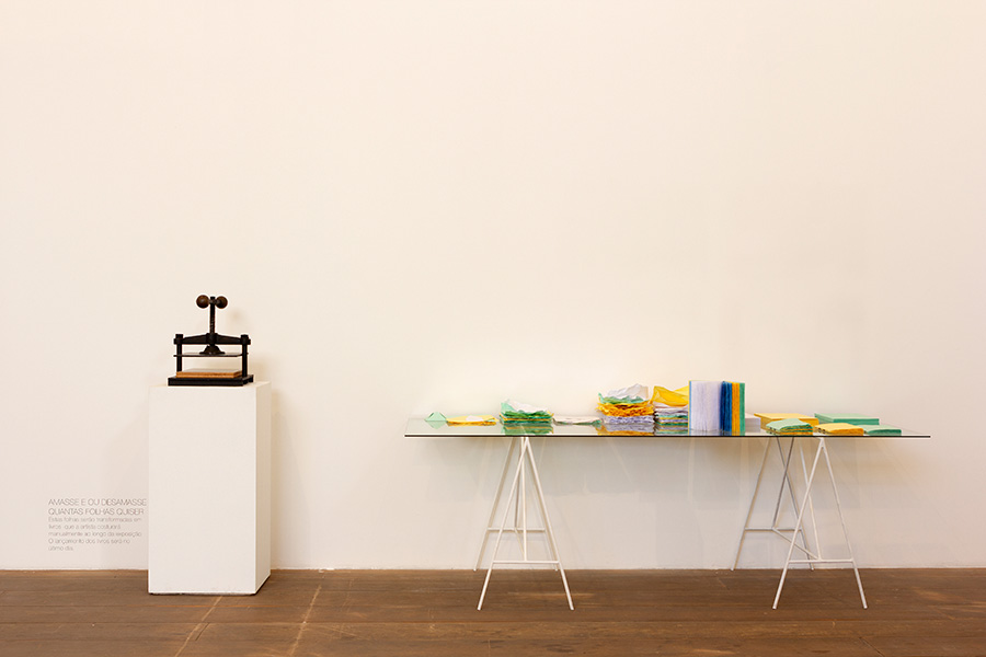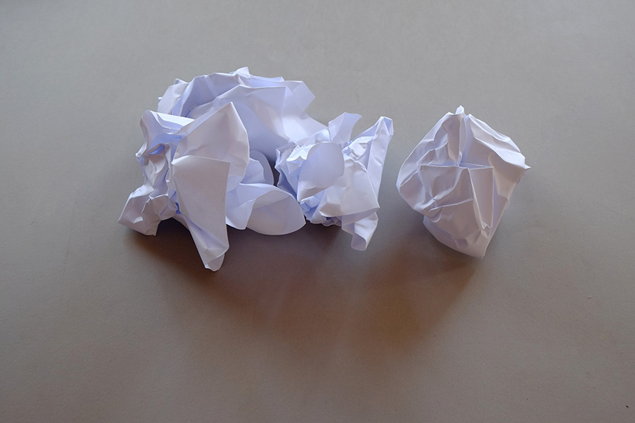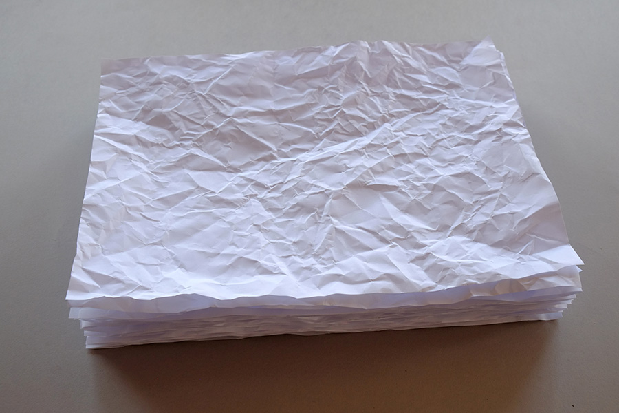 sulfite A4 amassado e/ou desamassado (durante o periódo desta exposição, por quem quiser amassar e/ou desamassar).